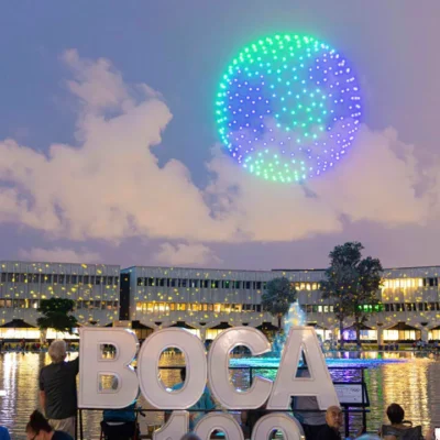 Experience a spectacular FREE Centennial Drone Show at the iconic Boca Raton Innovation Campus (BRiC). This cutting-edge event will light up the night sky with dazzling displays of synchronized drones, creating a breathtaking visual story that honors the City’s 100-year history. As the birthplace of the IBM personal computer, BRiC symbolizes Boca Raton’s pioneering role in technology and innovation. This unique setting reflects the City’s transformation from a small resort town to a hub of invention and progress. Bring the family or friends and be part of this awe-inspiring tribute to Boca Raton’s past, present, and future!