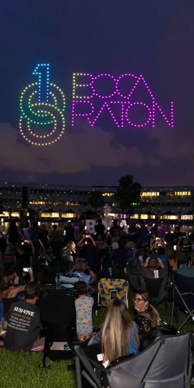 • 8:30pm  – The sky will illuminate with the FIRST drone performance (approx. 12 minutes) taking viewers through images from Boca Raton’s history.