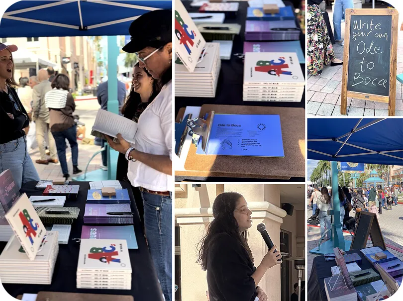 What begins with a creative prompt becomes a powerful poetic homage to shape the city. Through the Ode to Boca program, selected poems are transformed into art installations, placemaking projects, and interactive experiences that turn personal voice into public space. Ode to Boca ensures that the story of Boca Raton is not only told, but seen, felt, and shared for generations.